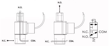 二位三通多功能型磁保持式电磁阀 磁保持电磁阀是使用永久性磁铁与特制脉冲线圈在运转状态下,电磁阀维持两种稳定工作状态是不需要维持供电;该系列电磁阀拥有广泛配置选项范围和卓越可靠的性能。是控制阀门行业里的标杆。空气,水和其他液体使用标准的丁腈橡胶密封件。热水,蒸汽,汽油,和其他油脂类介质需要特殊的密封材料。 • 最经典外形和性能设计 • 不锈钢材质阀体 • 超长寿命和高可靠性保证 • 流量范围选择广:通径从1/32"~1/8"可选 流程配置图